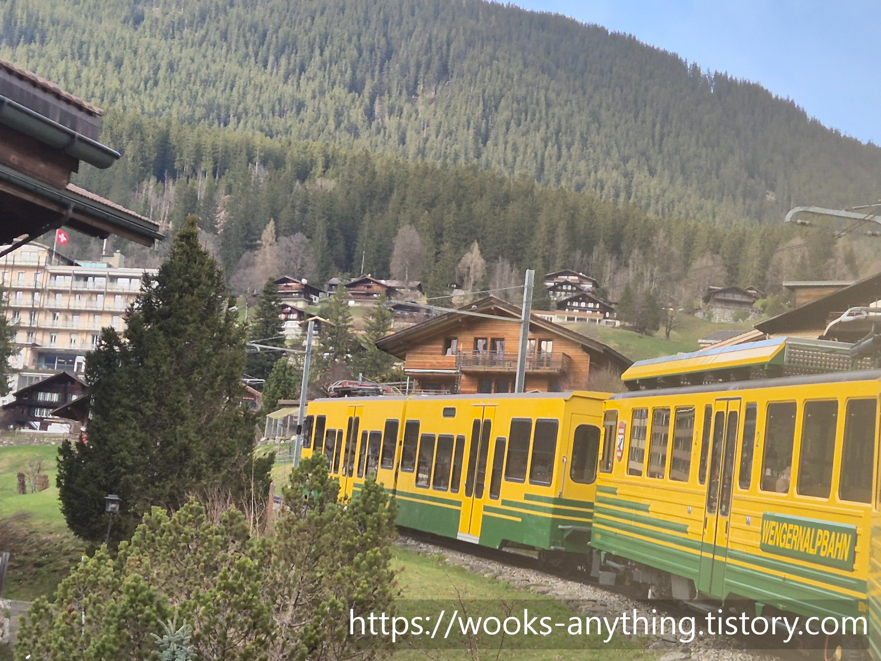 기차를 타고 내려가는 길에도 유튜브에서나 보던 스위스 기차와 풍경들에 감탄하며 사진을 찍으며 내려갔다.